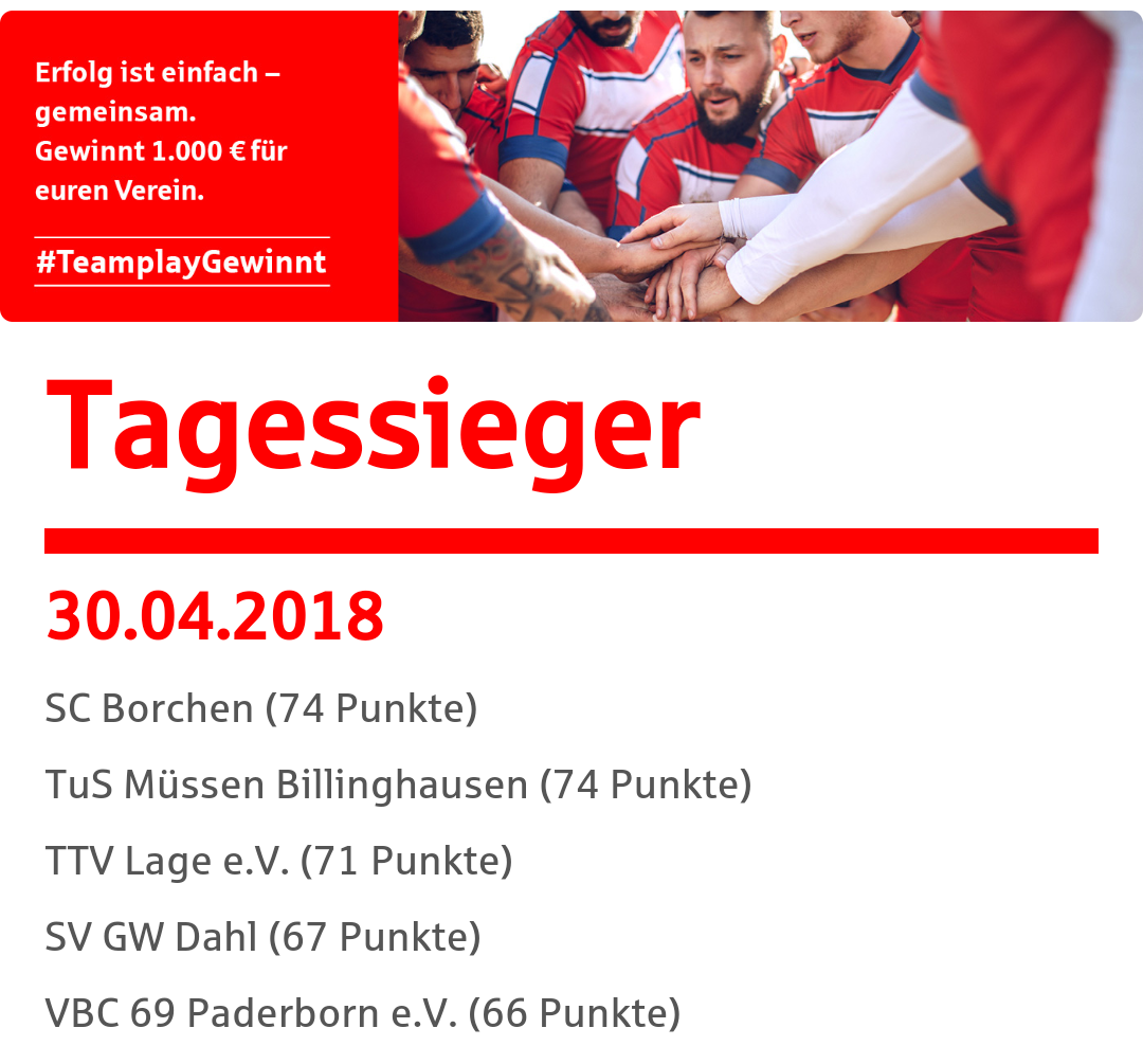 Für jede erfolgreiche Teilnahme bekommt der TTV einen Punkt…