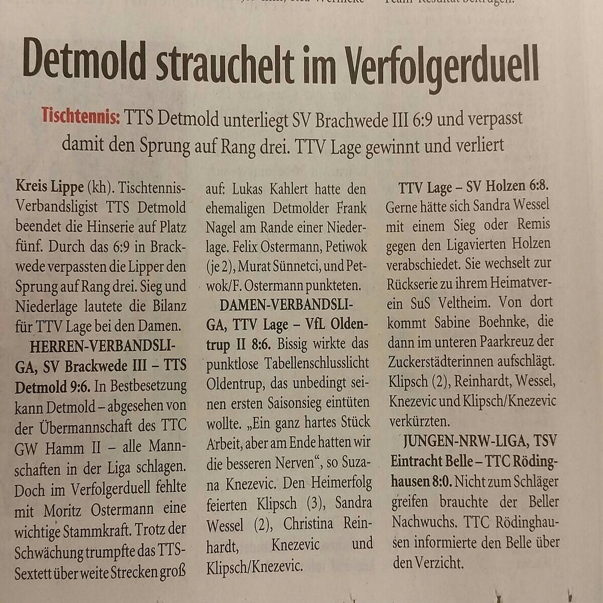 Berichtigung: Sandra Wessel wechselt nur für den Seniorinnen Spielbetrieb zurück nach Veltheim, Damen- und Individualspielberechtigung verbleiben weiterhin in Lage.