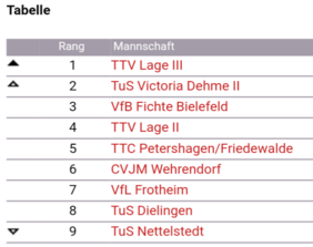 Nach 2 Auftaktsiegen folgte eine Niederlage im Vereinsduell gegen die 2. Damen. Anschließend gelangen Siege gegen Petershagen (8:4) und Frotheim (8:3).