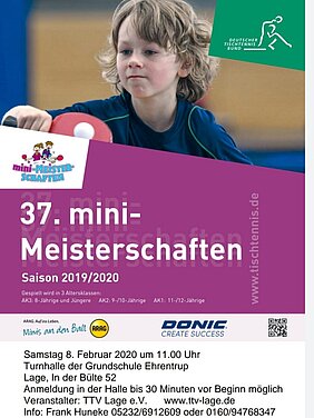 Am 8. Februar findet um 11.00 Uhr in der Turnhalle Ehrentrup, (Lage, In der Bülte 52) ein Ortsentscheid der vom Deutschen Tischtennisbund (DTTB) bundesweit veranstalteten mini-Meisterschaften statt.