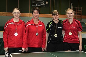 In den Doppeln spielten Sabine und Melanie, sowie Julia mit Louisa Brieskorn aus Wehrendorf. Julia und ihre Partnerin mussten dem Doppel aus Oldentrup Rauschenbach/Krichel leider zum Sieg gratulieren. Nach einem Freilos in der 1. Runde trafen Melanie und Sabine dann auch auf das Doppel aus Oldentrup. Sie konnten das Spiel mit 3:1 für sich entscheiden und zogen damit ins Halbfinale ein. Hier standen sie einem Spitzendoppel aus Schloß Holte-Sende Sriskandarajah/König gegenüber. Nach 5 hart umkämpften Sätzen machten sie die Sensation perfekt und erreichten überraschend das Endspiel. Gegen das Doppel Brockmeier/Tiemann aus Mennighüffen waren sie dann doch chancenlos und erreichten nach einem aufregenden Spieltag den 2. Platz.