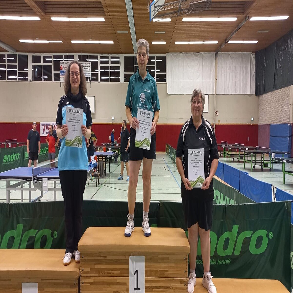 Bei den Bezirksmeisterschaften 2023 in Warburg gab es für zwei teilnehmende Seniorinnen vom TTV Lage gleich zwei Erfolge: Sabine Weber und Doris Kahle wurden Bezirksmeisterinnen im Doppel bei den Seniorinnen.