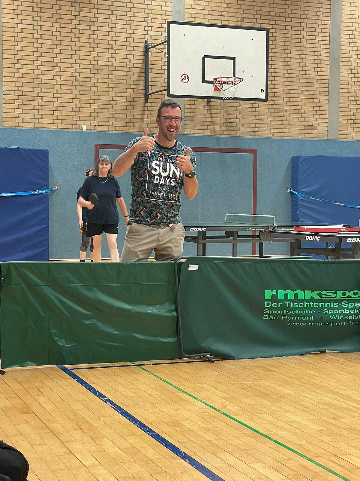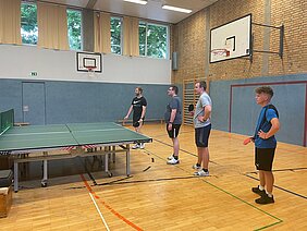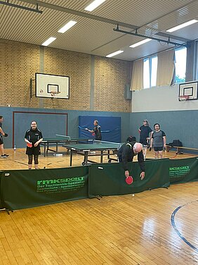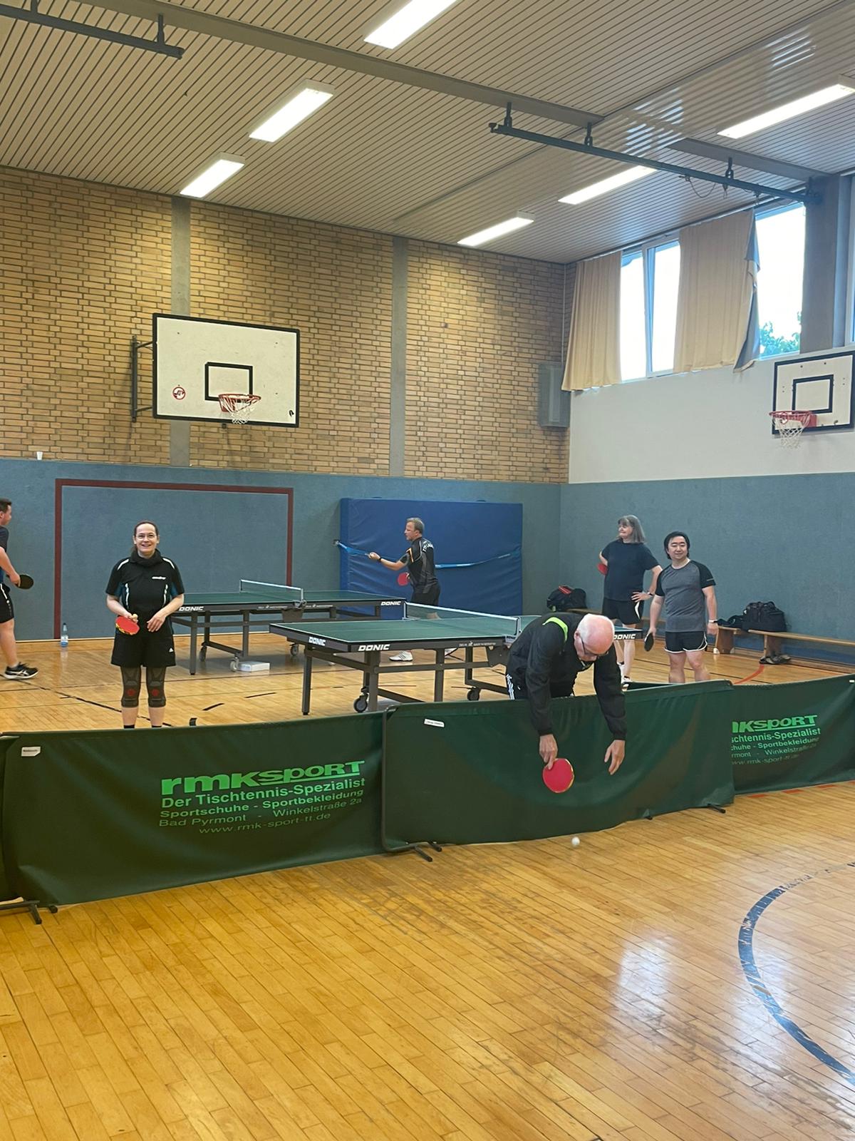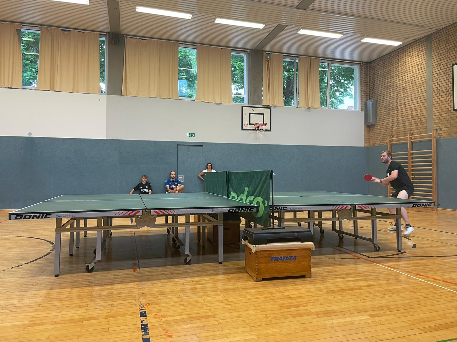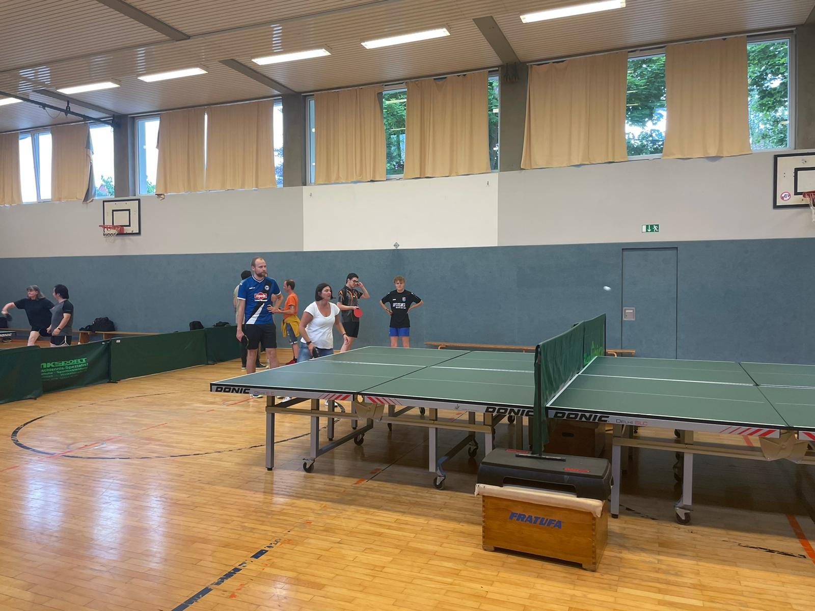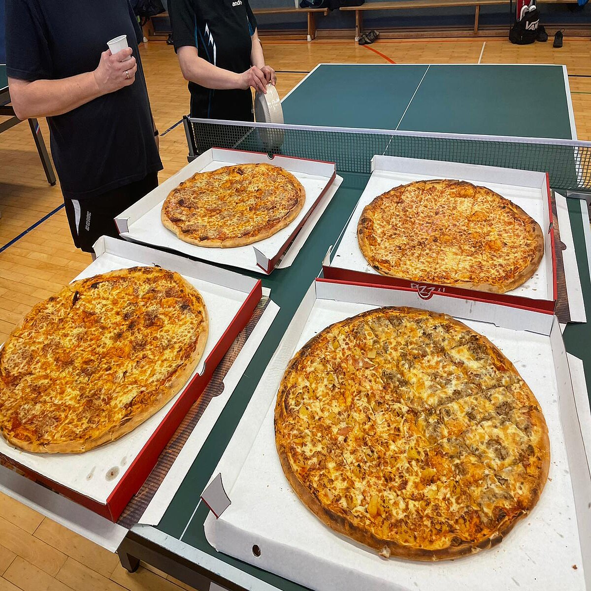 Die Saison 2021/22 musste leider wegen Corona nach der Hinrunde abgebrochen werden. Zum Abschluss dieser halben Saison trafen sich knapp 30 Mitglieder in der TH Maßbruch zu lockeren Gesprächen, einigen Getränken und „Pizza auf die Hand“. Dabei ließen es sich besonders die jüngeren Spieler nicht nehmen, einen großen „Vierer-Rundlauftisch“ aufzubauen und es kam zu vielen interessanten Ballwechseln. Kein Ball wurde verloren gegeben und es wurde so lange gespielt bis auch wirklich jeder einmal das Endspiel erreicht hatte…