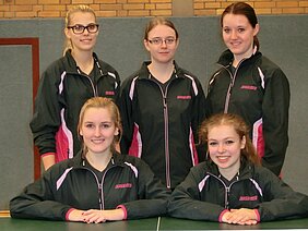 Das Meisterteam stellt sich vor mit (Reihe hinten) Jana Rüter, Melanie Menne, Vivian Holzhauer