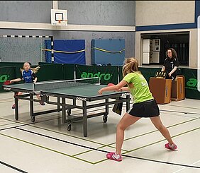 Neben Fußball, Darts und Bubbleball gab es auch tolles Tischtennis unserer Jugendabteilung zu sehen. So spielte Neuzugang und Westdeutsche Meisterin der U13 Mädchen gegen die 17 jährige Nina Seibt, Oberligaspielerin und dritte ihrer Alterklasse in NRW. Weiteres Highlight war das Spiel der kommenden Jungen U18 NRW-Liga Mannschaften vom TTV und der TuRa Elsen.
