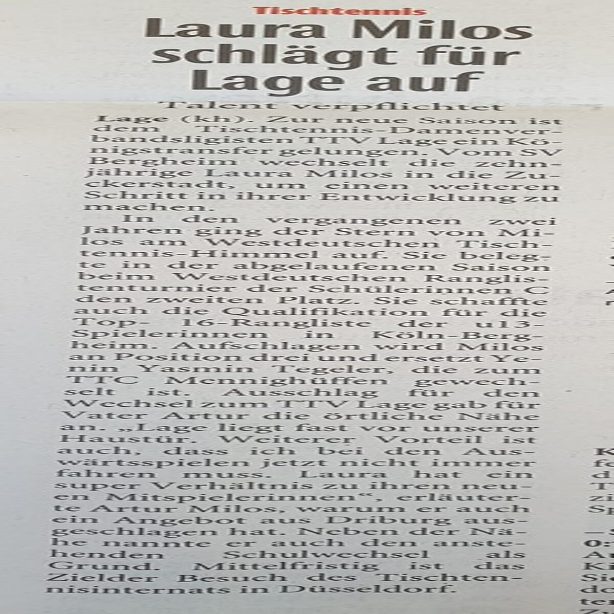Wir sind sehr glücklich, dass Laura Milos, Tim Leßmann, Lennert Rosowski und Christian Rodwald in der neuen Saison für den TTV Lage aufschlagen werden. Herzlich willkommen.