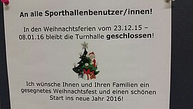 Schließzeiten TH Ehrentrup "Dome" über Weihnachten
