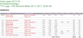 Auch die B-Schüler schickte Belle mit 6:4 nach Hause. Alle Spielerinnen und Spieler konnten mit je 2 Siegen zum Erfolg beitragen.