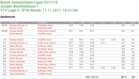 Samstag Mittag durfte dann die 2. Jungen gegen BTW Bünde aufschlagen und auch als verdienter Sieger mit 8:4 aus der Halle gehen. Besonders überzeugte Michel mit 3 gewonnenen Einzeln.
