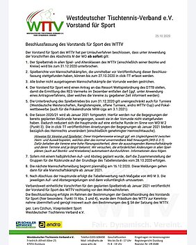 Nachdem der WTTV gestern den gesamten Spielbetrieb in NRW bis zum 31.12.2020 unterbrochen hat (siehe Bild),